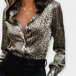 Vyrobená z vysoce kvalitního odolného saténového materiálu, tato halenka nabízí jemný lesk a moderní vzhled díky tištěnému vzoru, který dodává nadčasový šarm každému outfitu.
