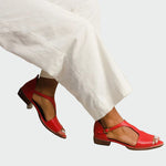Představujeme Albínu Nízké sandály — stylový kousek z pravé kůže v červené barvě , který spojuje eleganci s pohodlím pro každodenní nošení.