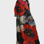 Αύρα Αιωνιότητας je okouzlující šaty s výrazným květinovým motivem. Na černém podkladu dominuje soubor červených a modrých máků, který dodává úpravu outfitu a eleganci – ideální volba pro ženy, které milují výrazné kousky a skutečně vynikají.