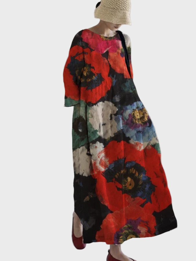 Impozantní vzor s máky a pohodlný, lehký střih zajišťující komfort po celou noc. Tento design spojuje ženskost s odvážnou estetikou a vytváří ideální vzhled pro večerní akce a umělecké vystoupení.