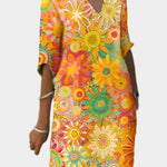 Oživte svůj letní vzhled tímto výrazným barevným šatem s květinovým vzorem. Ideální pro vaše letní vycházky, šaty spojují veselou energii a volnost pohybu v jedinečném designu, který zaujme na první pohled.