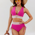 Objevte jedinečný letní styl s tímto setem bikin s vysokým pasem a podpůrným systémem pro bříško. Tento plavkový set spojuje ženskost, komfort a oporu v jednom — ideální pro pláž i bazén.