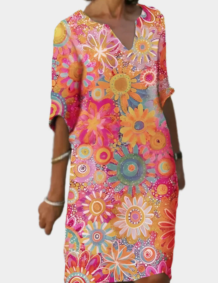 Barevné Šaty Se Vzorem Pro Ženy Ve Volném Střihu Elegantně