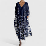 Objevte večerní šaty s V-střihem , které spojují diskrétní eleganci s nadčasovým stylem. Tmavě modrý odstín působí jako elegantní plátno a lichotí každému tónu pleti. Jemné květinové motivy zdobí spodní část šatů a při pohybu se objeví v romantických detailech, aniž by působily přeplněně.