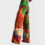 Stylové živé džíny s širokými nohavicemi, inspirované svobodou 70. let, přináší hravý a odvážný vzhled. Tento kousek spojuje vysoký pas, široké nohavice a celoplošný potisk plný západů slunce, oblaků, květin a hvězdiček. Výsledek je jedinečný, nostalgický i současný zároveň — perfektní volba pro ženy, které milují výrazné a sebevědomé spojení stylu a pohodlí.