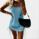 Letní Pletené Šaty Bez Rukávů S Páskem Délka Ke Stehnu