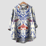Obohaťte svůj šatník o kousek s hravým nádechem – modrá košile s roztomilým vzorem psa je ideální pro casual look s výrazným charakterem. Pohodlný a široký střih zajišťuje volnost pohybu, zatímco klasický límec s knoflíky dodává jemnou eleganci. Tato košile přináší jedinečný styl do každodenních outfitů.