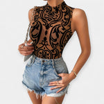 Sexy Bodíčko Z Krepové Latky S Geometrickým Vzorem Elegant