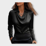 Saténová Halenka S Drapovaným Výstřihem A Límcem Elegantní