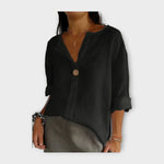 Lněná Halenka S Knoflíkem AV Výstřihem Volný Střih