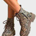 Dámské Kotníkové Boty Se Zebrovým Vzorem S Šněrováním