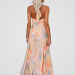 Midi Šaty S Květinovým Vzorem Halter Výstřih Pastelové