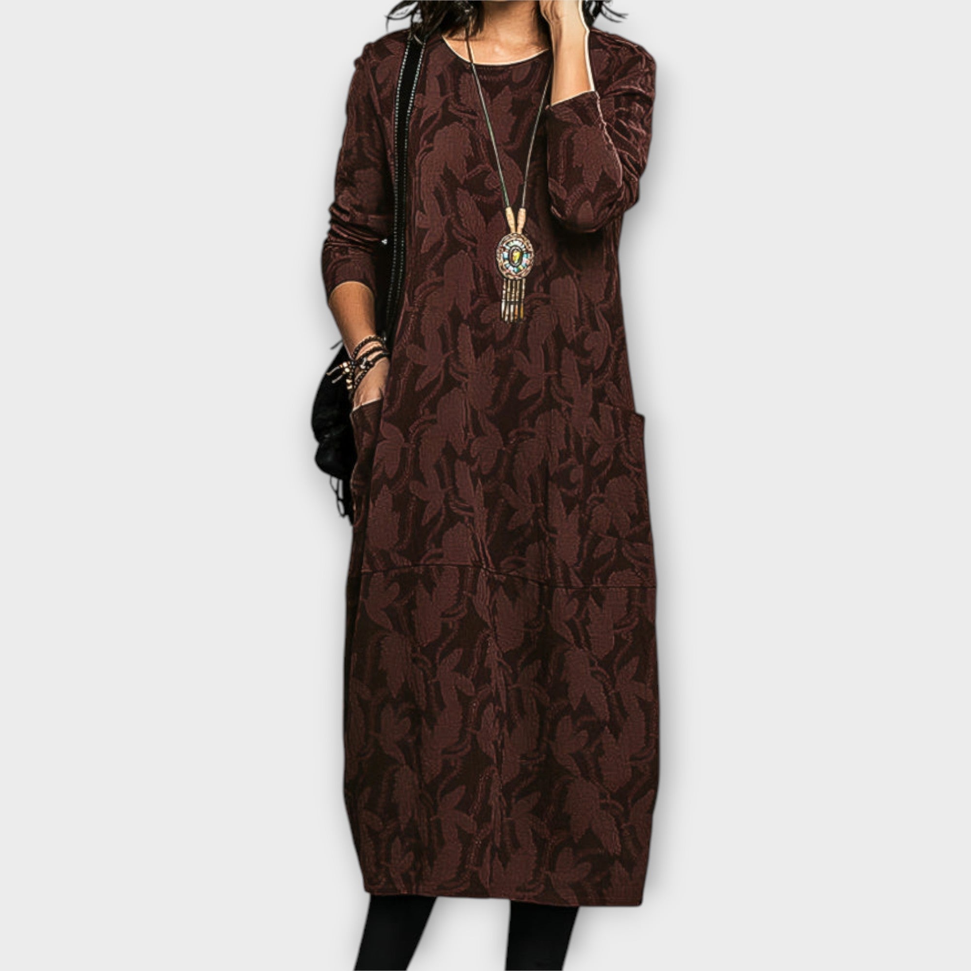 Objevte dlouhé šaty s kapsami a volným střihem — kousek, který spojuje pohodlí a nadčasovou eleganci. Díky designu se skvěle hodí pro každou univerzální příležitost, od casual až po formálnější večer. Volný střih zajišťuje svobodu pohybu, zatímco praktické kapsy dodávají každodenní funkčnost s dotykem ženské kultivovanosti.