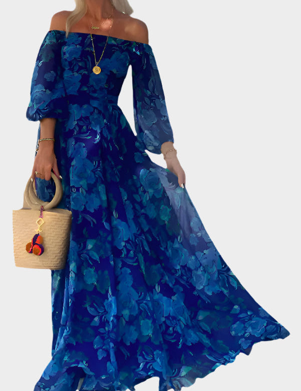 Letní Vzdušné Boho Šaty S Puf Rukávy Květinovým Potiskem