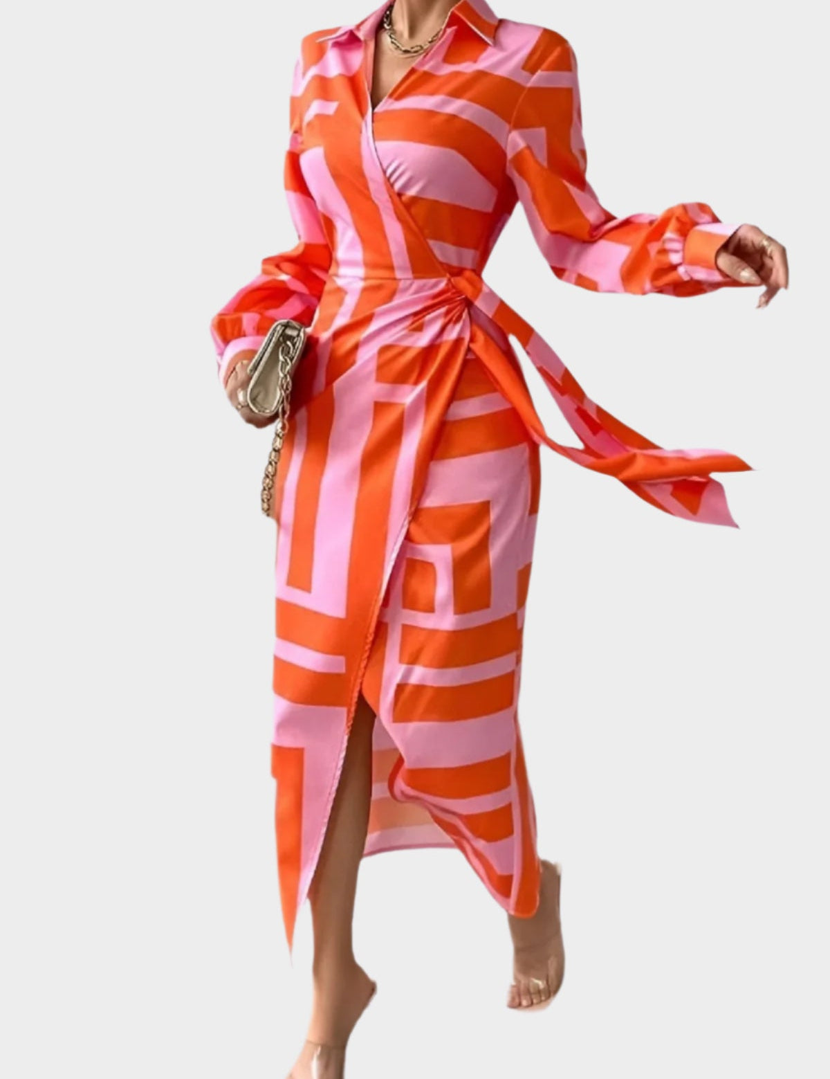 Vytisknuté Šaty S Nastavitelným Pasem Geometrickým Potiskem