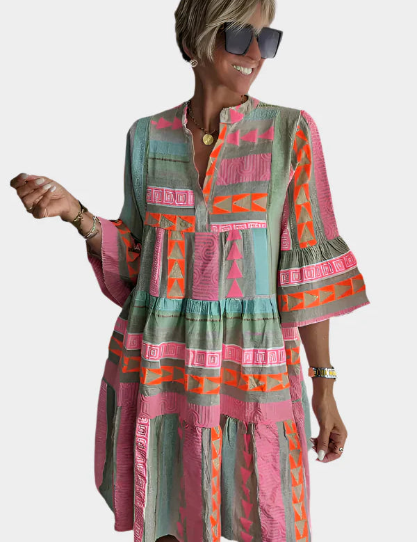 Prodyšné Letní Šaty S Geometrickým Vzorem Lehkým Materiálem