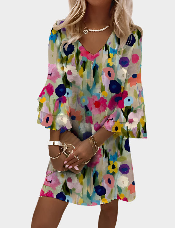 Vintage Boho Šaty SV Dekoltem S Květinovým Motivem