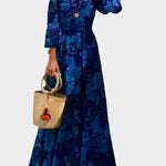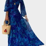 Design s ramenem odhalený a jemnými průsvitnými rukávy dodává svěží a svůdný dojem. Dlouhá sukně s plynulým spadem zajišťuje volnost pohybu při každém kroku. Květinový vzor v modré paletě působí elegantně a zároveň svěže.