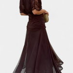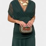 - V-dekolt zvýrazňuje ženskost a dodává šatům elegantní vzhled.