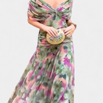 Dlouhé Šaty s Květinovým Vzorem a Výstřihem do V na Večery