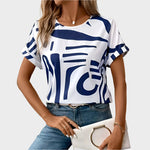 Elegantní Tričko S Abstraktním Vzorem Modro Bílých Odstínů