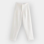 Tyto kalhoty vyzařují diskrétní šarm a nenucený styl. S plynulým střihem a příjemnou texturou jsou ideální volbou pro vzhledy vyžadující eleganci bez přehánění v kanceláři až po odpolední vycházku.