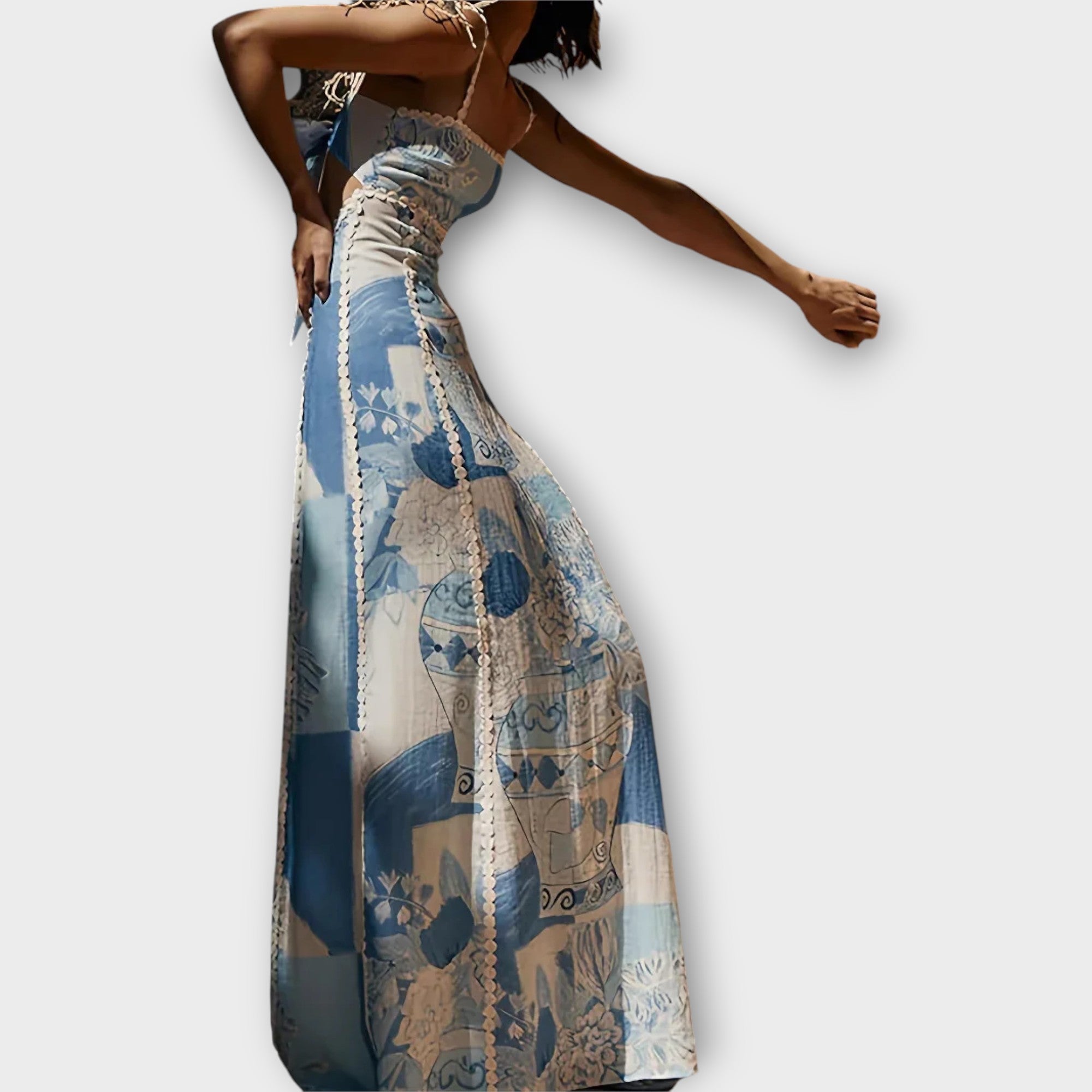 Dlouhé vzdušné šaty s tenkými ramínky spojují lehkost a nadčasovou eleganci. Tento elegantní model je ideální pro každodenní i slavnostní příležitosti a dokáže zvýraznit každý váš look.
