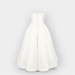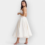 Minimalistické bílé midi šaty představují nadčasovou eleganci a nenucenou ženu. Tento kousek minimalistický design s jemným, tekoucím střihem , který lichotí postavě a zároveň zajišťuje komfort po celý den.