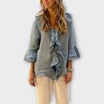 Blůza s volány a elegantně ležérním střihem nabízí nadčasovou eleganci a promyšlenou všestrannost pro každý den. Lehká a jemná textura doplňuje volánkové detaily, které zvednou váš vzhled bez námahy. Volný střih zajišťuje pohodlí a svobodu pohybu po celý den.