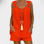 Letní Set Bez Rukávů SV Výstřihem A Šortkami Pro Ženu