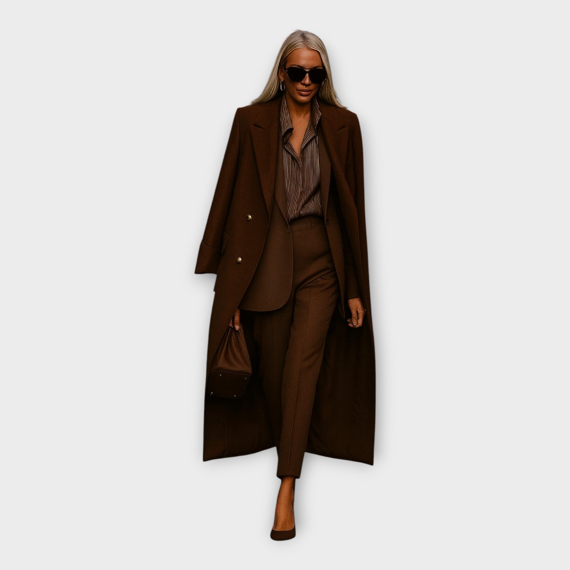 - Univerzální styl – elegantní set s kalhotami a kabátem v minimalistickém provedení pro každou příležitost.