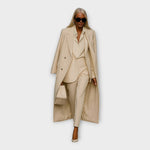 Elegantní souprava s kalhotami a kabátem v minimalistickém střihu přináší praktickou eleganci do každého šatníku. Tento set se snadno přizpůsobí vašemu stylu a dodá poslední dotek každému outfitu.