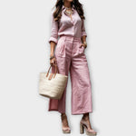 Vytvořte si s tímto stylem, který působí elegantně a nenápadně sebejistě. Kombinujte ho s různými botami, doplňky a kabáty pro dokonalý vzhled – ať už jdete do práce, na procházku městem nebo na speciální událost. Objednejte si tento elegantní set ještě dnes a dopřejte si nadčasovou eleganci spolu s komfortem v jednom balení.