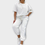 Doporučujeme vám set loungewear s volným střihem — pohodlný a stylový kousek, který se bez námahy přizpůsobí vašemu osobnímu stylu. Tento komplet kombinuje každodenní komfort s moderním vzhledem, takže se skvěle hodí jak pro klidné chvíle doma, tak pro nenápadně elegantní venkovní momenty.