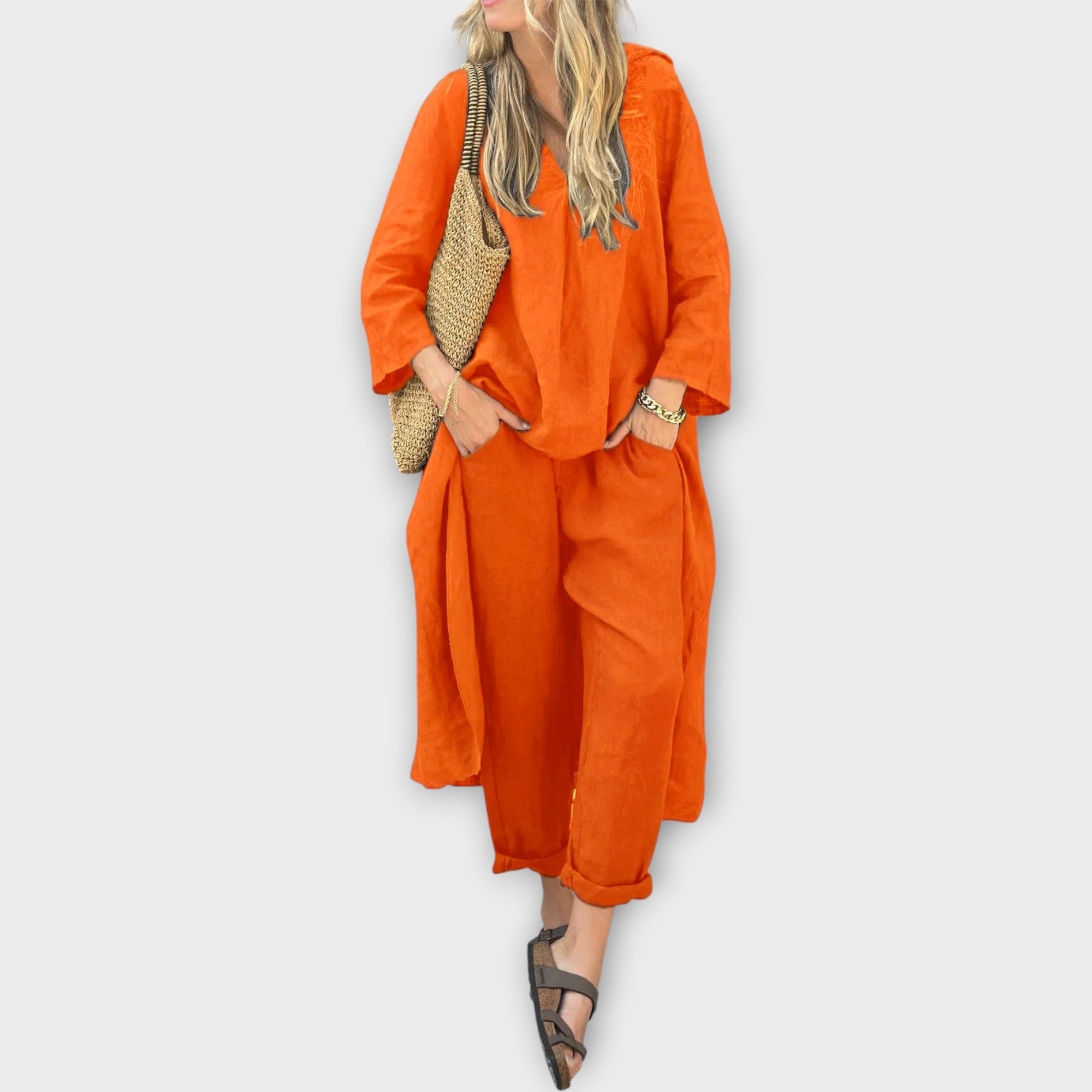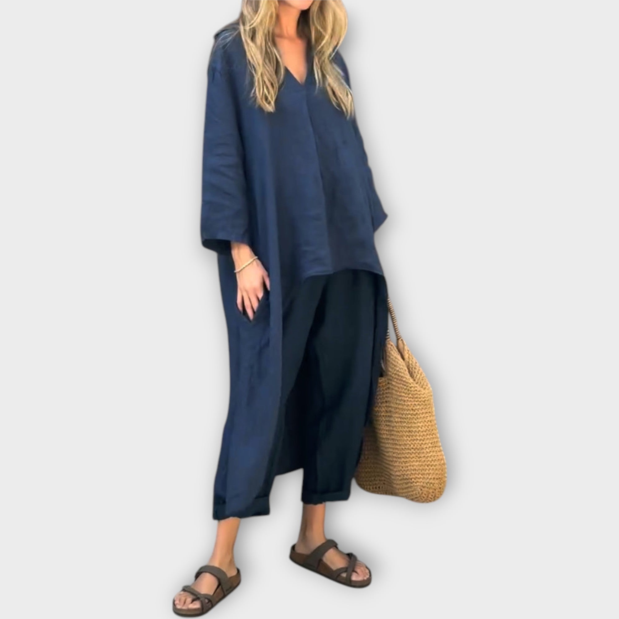 Objevte náš stylový set s volným střihem a nadčasovým designem, který se bez problémů přizpůsobí vašemu dni. Tento kousek kombinuje jemnou eleganci s pohodlím, a proto ho oceníte při každé příležitosti.