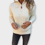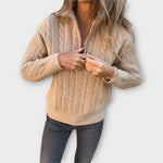 Objevte elegantní a praktickou pletenou zateplenou kardigan se zapínáním na zip, která spojuje nadčasový styl s komfortem pro každodenní nošení. Tento kousek je versatile a snadno se přizpůsobí každé příležitosti — od procházek městem až po více šatech momenty. Jemná textura a volný střih zajišťující pohodlí bez námahy a zároveň působí jemně a sofistikovaně.