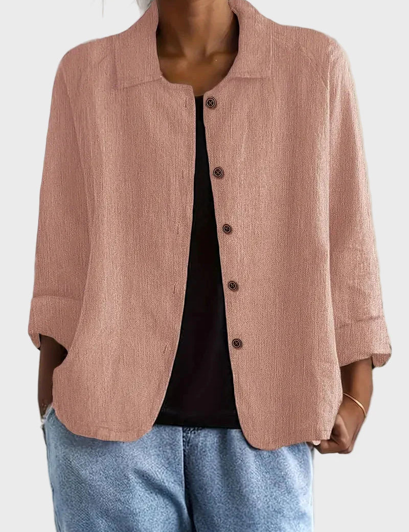 Lehká Lněná Halenka s Tříčtvrtě Rukávy v Růžové Barvě