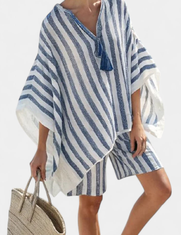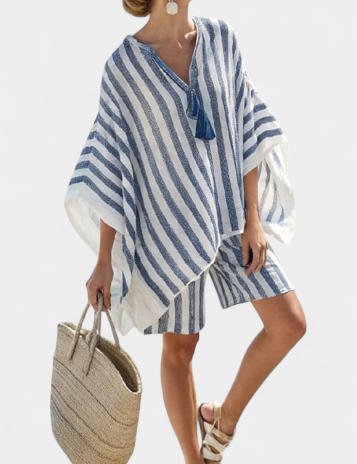 Letní Set Nancy Pruhovaná Oversize Košile a Stylové Šortky
