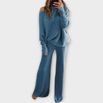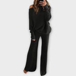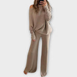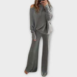Pletený Set S Volným Svetrem A Širokými Kalhotami Stylově