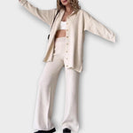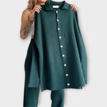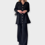 Jeho univerzální design a měkká textura zajišťující komfort po celý den, zatímco volný střih a minimalistická estetika vyzařují bez náročné sofistikovanosti. Ať už jdete na procházku, do práce nebo na formální akci, tento set vám poskytne stylový základ, který se hodí k mnoha outfitům.