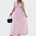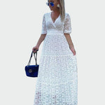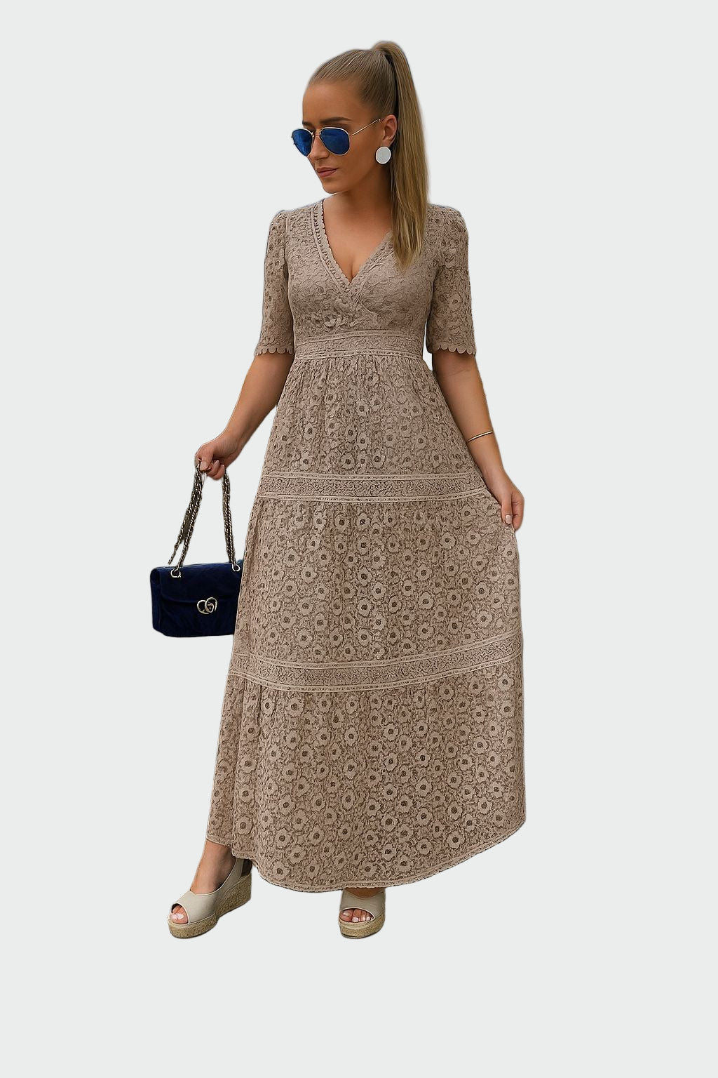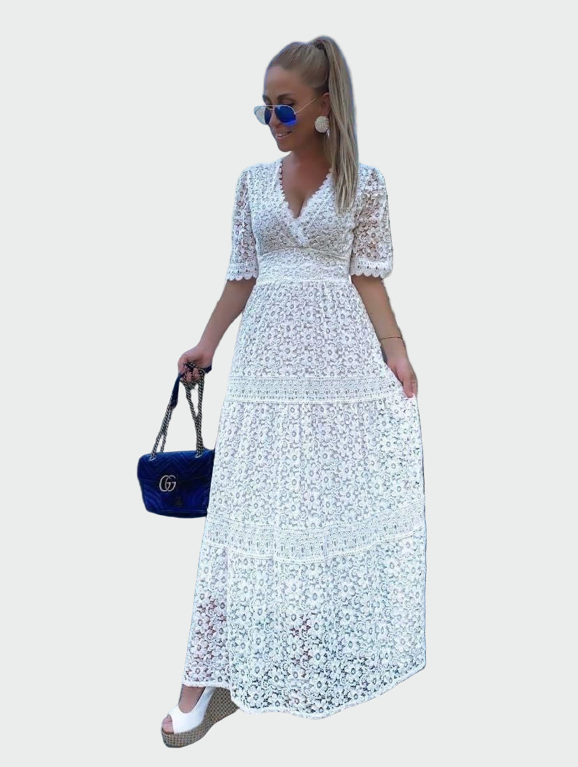 Krajkové šaty s jemnou krajkou představují dokonalou kombinaci ženství a elegance. Lehká bílá krajka s propracovanými vzory vytváří romantický a vysoce stylový vzhled, který zaujme na každé události. Elegantní střih a krajkové detaily spolu dokonale ladí a lichotí siluetě, aniž by kompromitovaly pohodlí.