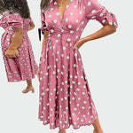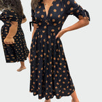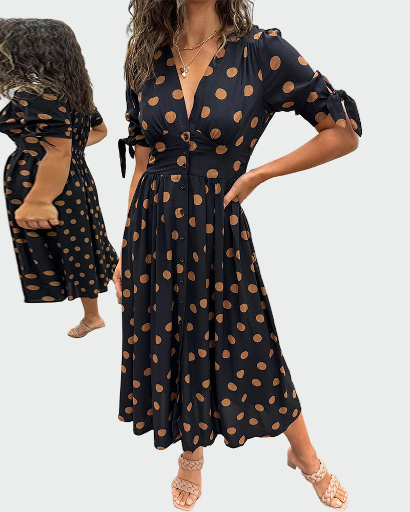 Objevte skutečně impozantní puntíkové šaty, které spojují eleganci a pohodlí pro každodenní nošení i večerní příležitosti. Tento model v klasické černé s hnědými puntíky nabízí sofistikovaný vzhled s romantickými detaily.
