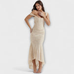 Dlouhé Šaty Se Šikmým Korzetem A Drapovaným Pasem Elegantní