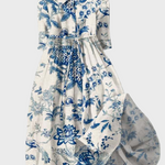Objevte lehkost a romantiku v našem šatním kousku – Květinové šaty s porcelánovým vzorem. Na čistě bílém pozadí dominuje modrý květinový motiv, který šatům dodává svěží a nadčasovou eleganci.