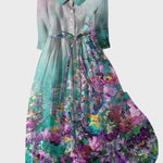 Objevte jedinečné Flórové šaty s dégradým vzorem — dlouhé šaty, které spojují eleganci s uměleckou inspirací a působí jako malířské dílo, jež ožívá na látce.