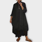 Šaty spojují praktičnost, vytříbený vzhled a ženské detaily. Jemná textura zajišťuje komfort a volný střih umožňuje volný pohyb po celý den. Minimalistická estetika s vycizelovaným charakterem dodává šmrnc, ať už jdete na kávu s kamarádkami, nebo na elegantní večírek.