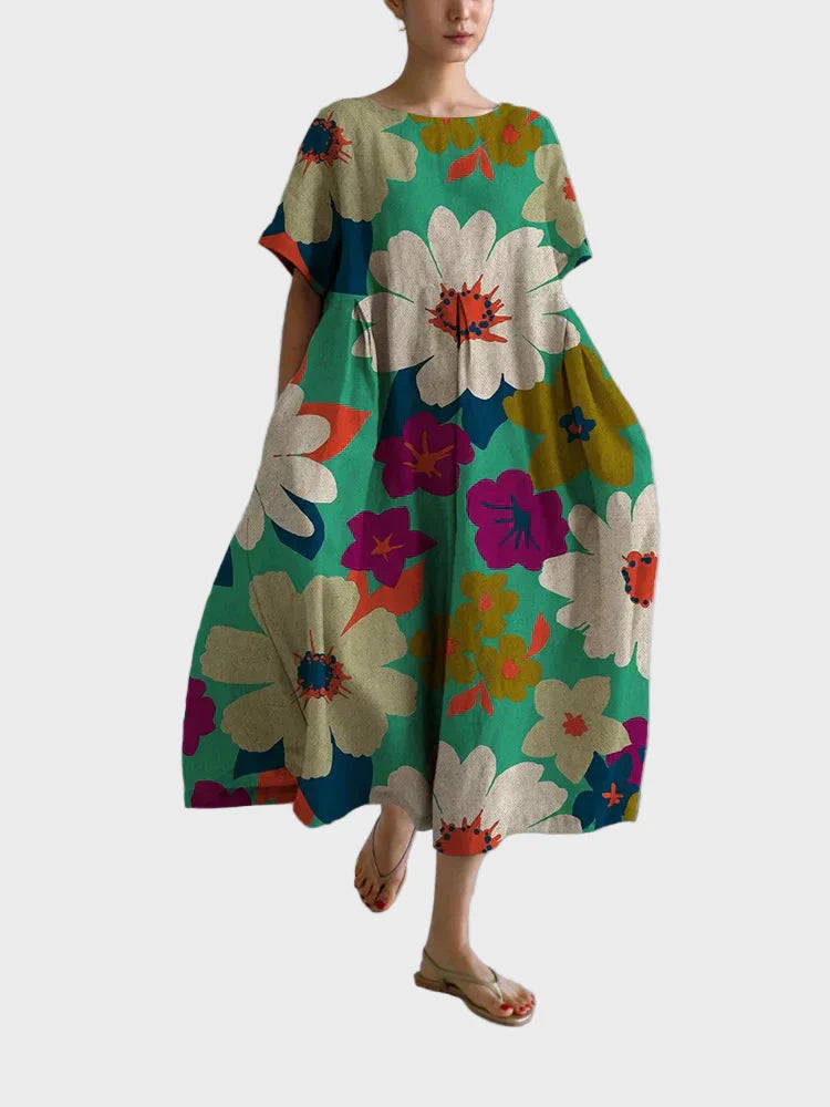 Inspirováno názvem Χάρη Χωρίς Χρόνο vznikají šaty, které vyzařují radost a svěžest pro každé letní okamžiky. Zelené pozadí s velkými květy v barvách tvoří výrazný vzor, ​​jasný okamžitě upoutá pozornost.