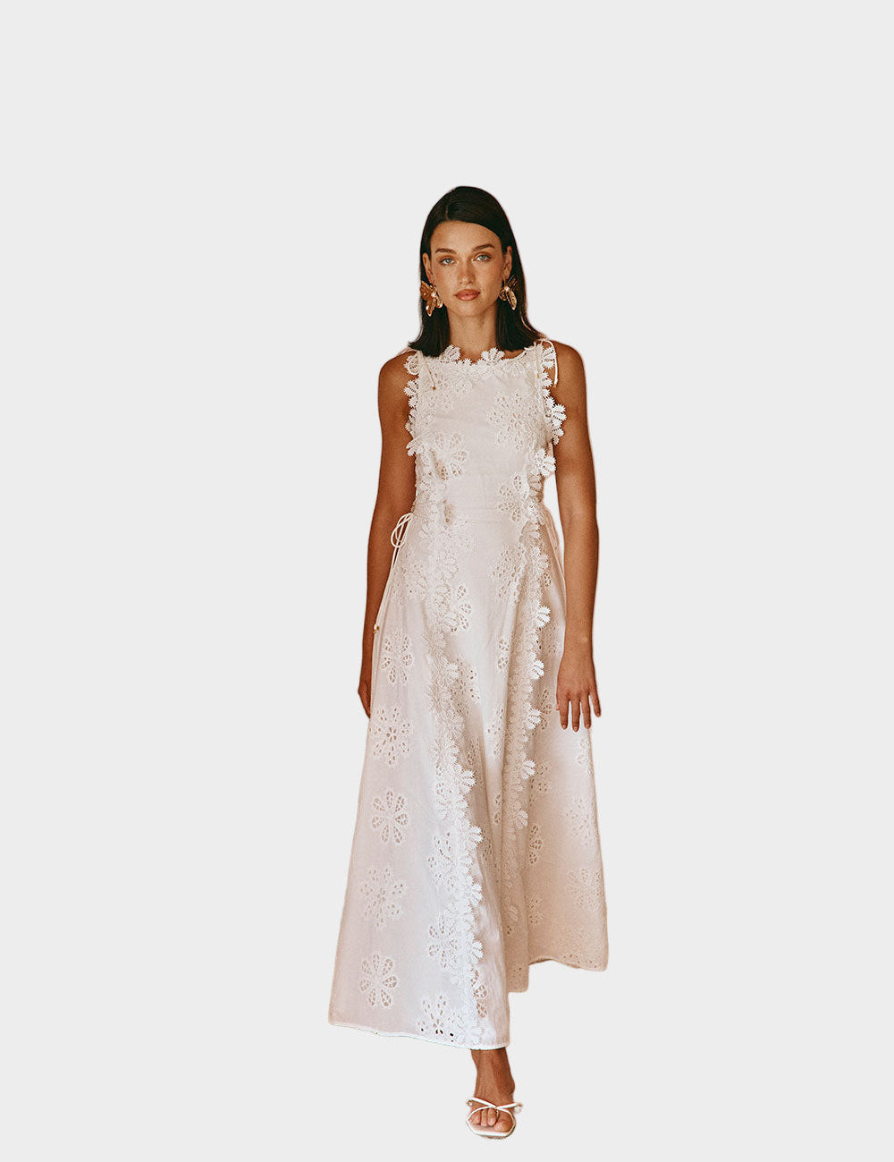 Dlouhé Bílé Šaty S Vyšívaným Vzorem Aristokratická Elegance