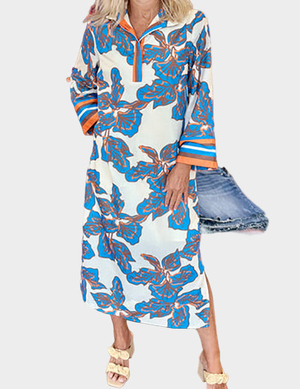 Kaftan S Květinovým Vzorem A Elegantním Zipem Pro Jaro Léto
