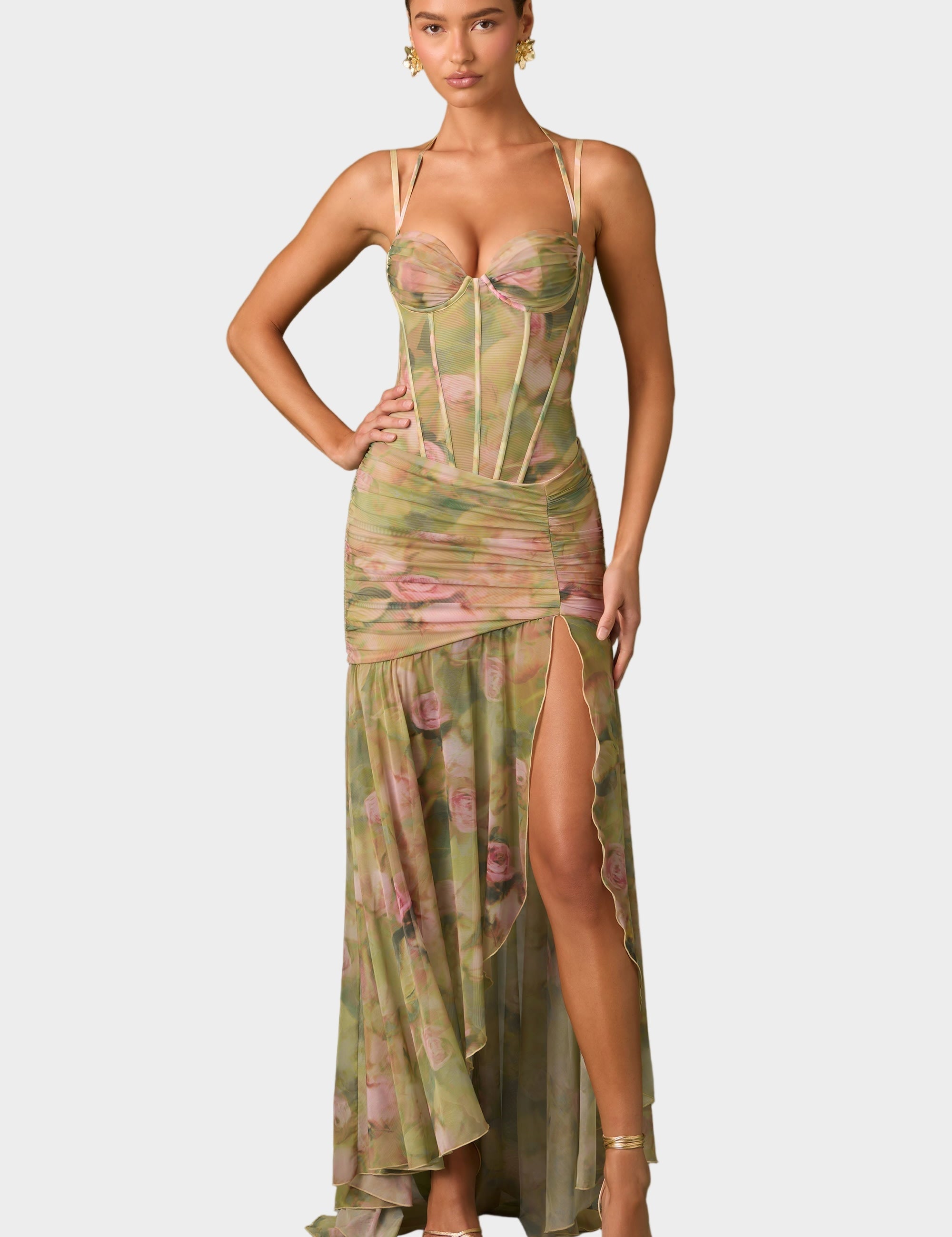 Elegantní Maxi Šaty S Květinovým Vzorem A Halterem Večer